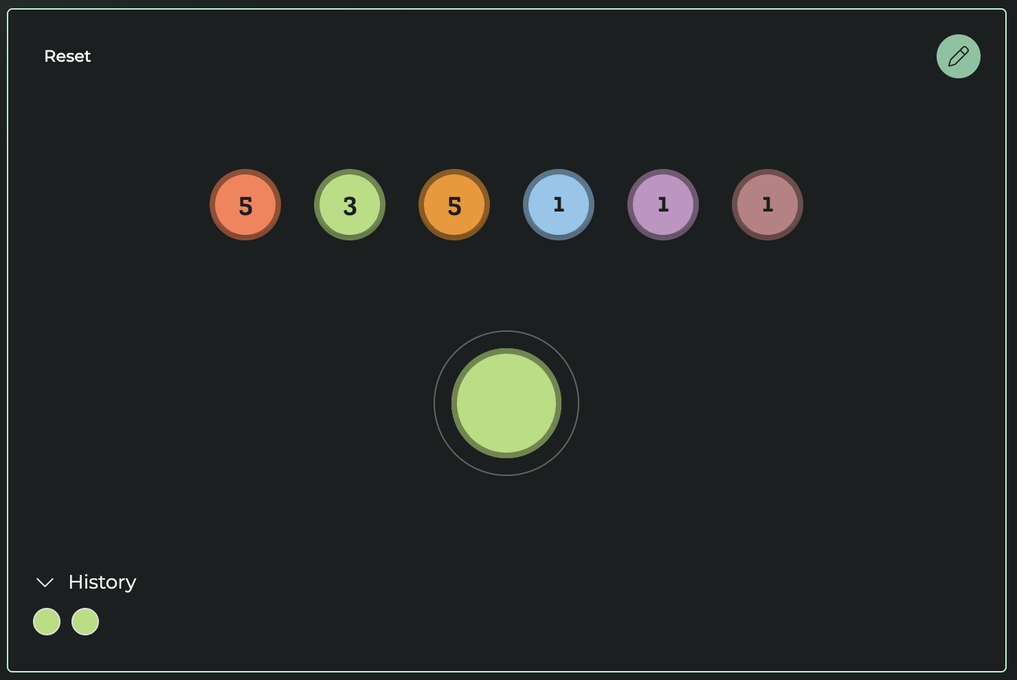 For example, here, we have created a bag with 5 failures, 5 successes, 5 ambiguous results, one critical success, one special event and one fumble. Two successes have already been “drawn”, meaning that future draws are more likely to result in failure.