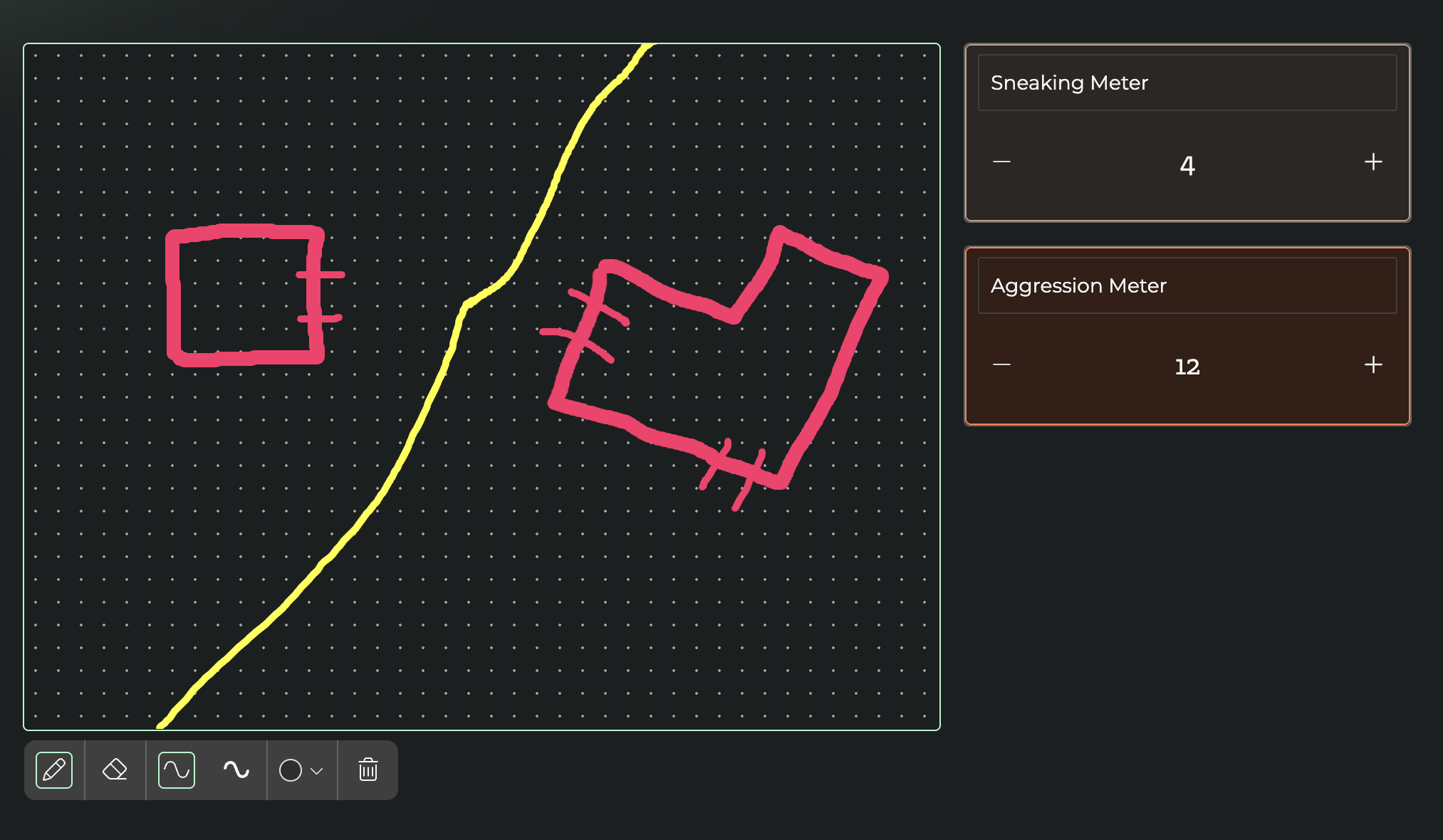 - You can choose the pencil stroke thickness in the drawing area