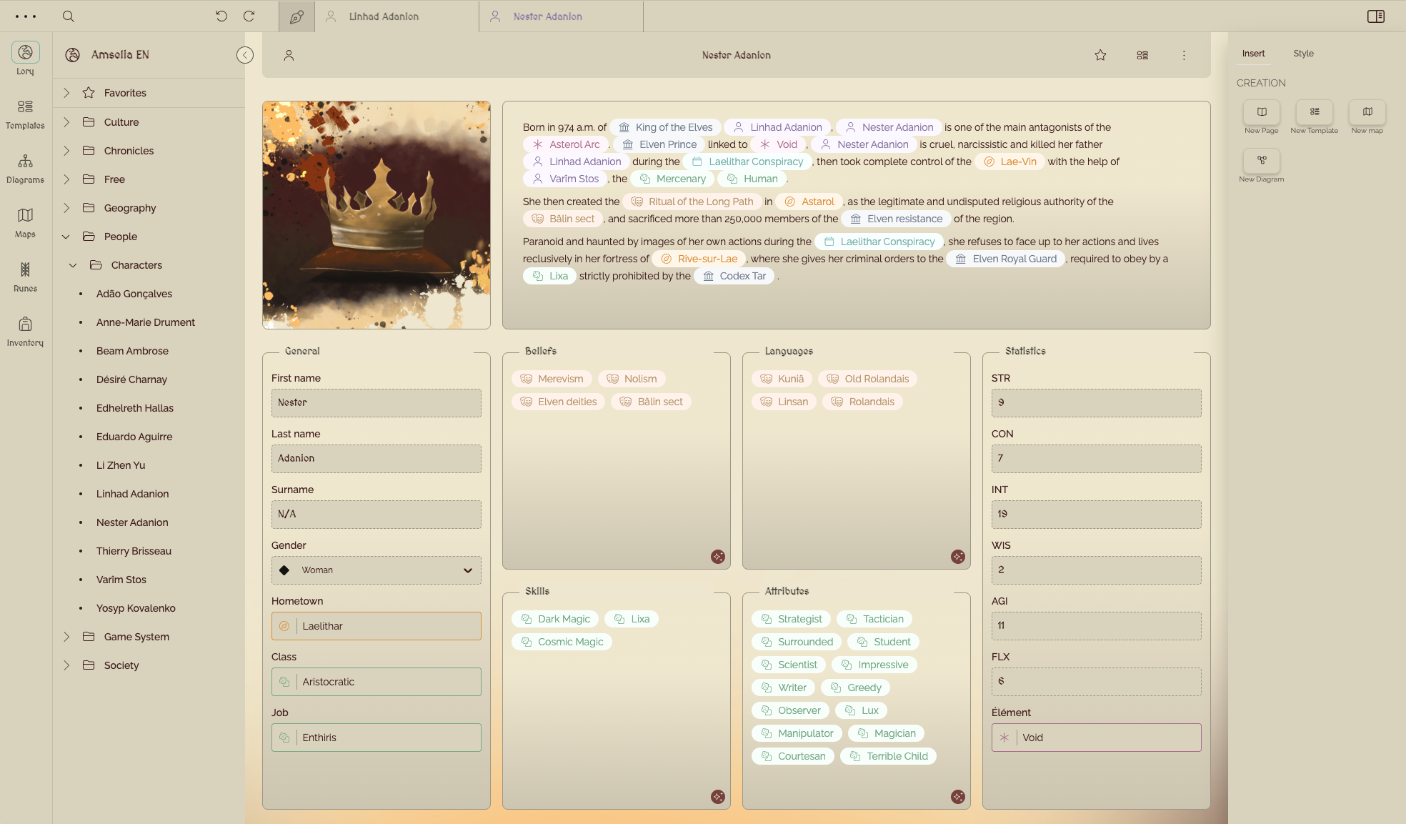 This Fantasy theme is available for both Lore, our worldbuilding software, and Tome, our storytelling tool. It follows the styling principles of the Suite’s light‑mode interface.