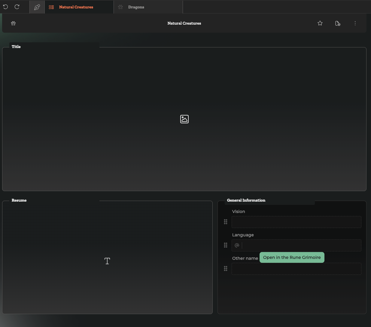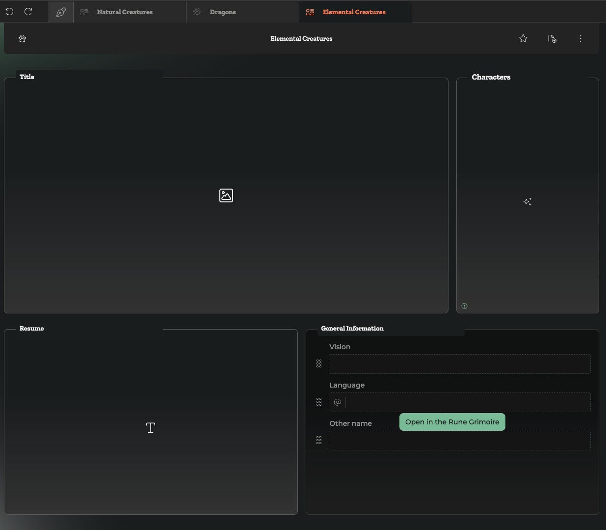In this example, we created a rune block for the “Natural Creatures” template and want to use it again for “Elemental Creatures.”