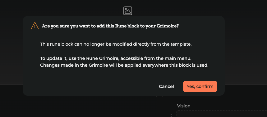The Grimoire is a recently added feature that lets you pre‑create rune blocks and save them so you can reuse them in other templates.
